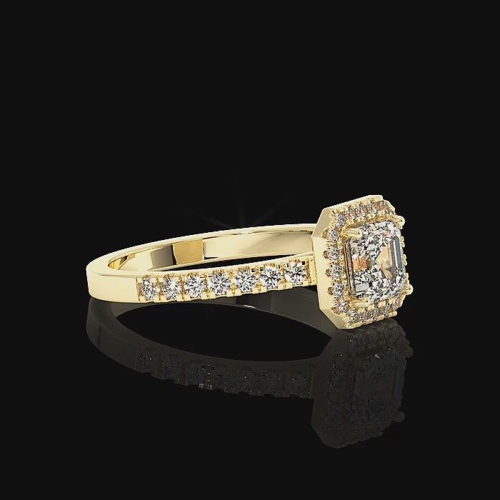 Asscher Cut Halo Ring #2 - Yellow Gold