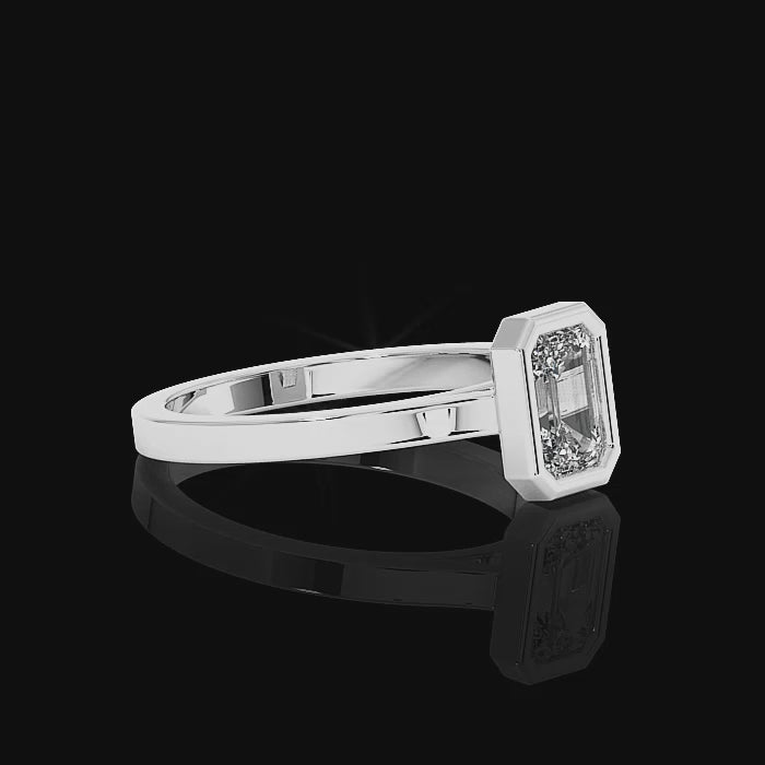 Bezel Set Emerald Cut Diamond Ring - Platinum