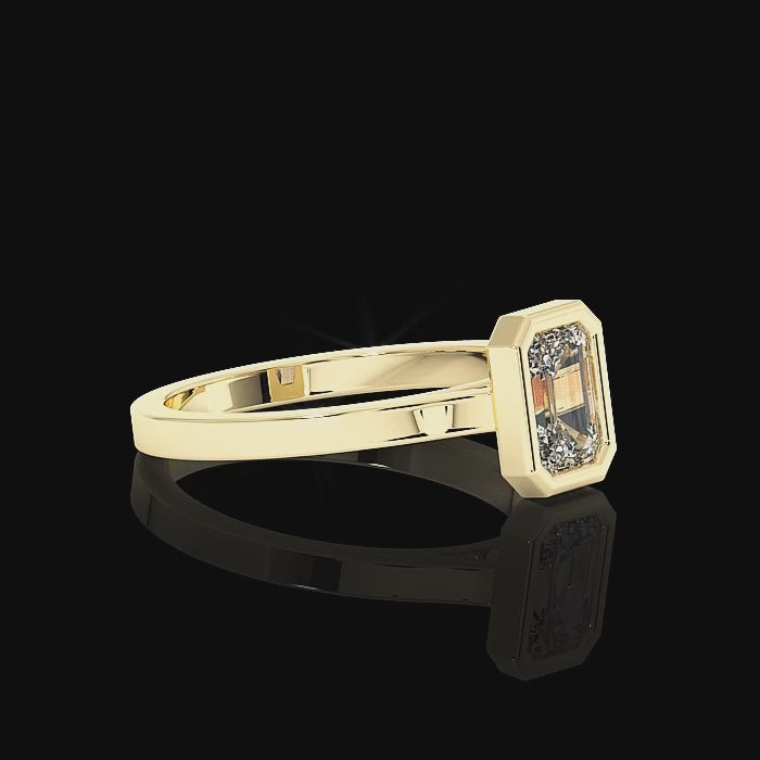 Bezel Set Emerald Cut Diamond Ring - Yellow Gold