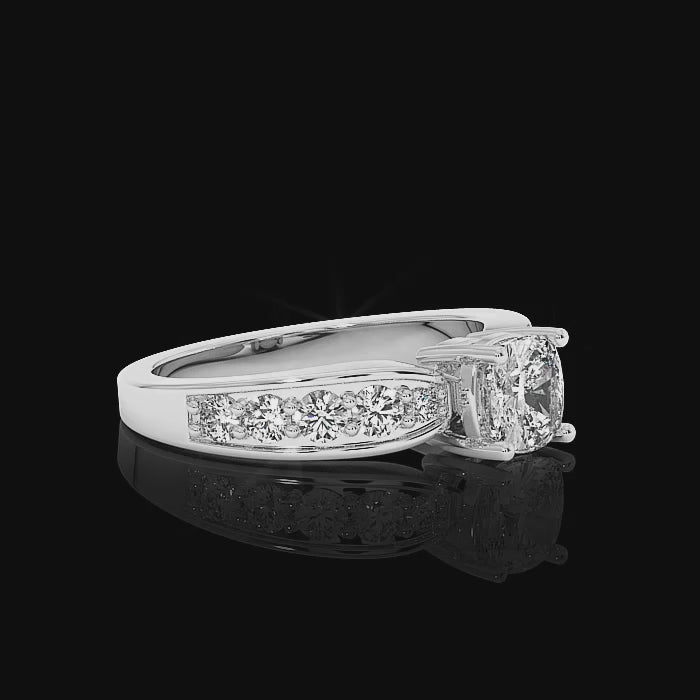 Cushion Cut ring with graduated shoulder stones- Platinum