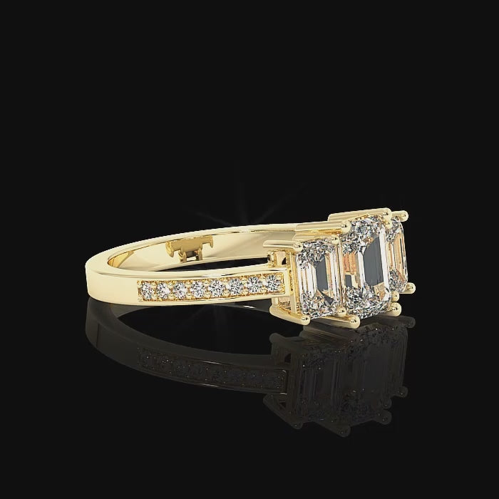 Emerald three stone Ring with Pave - Yellow Gold