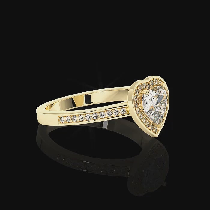 Heart Cut Diamond Ring with Halo & Pave - Yellow Gold