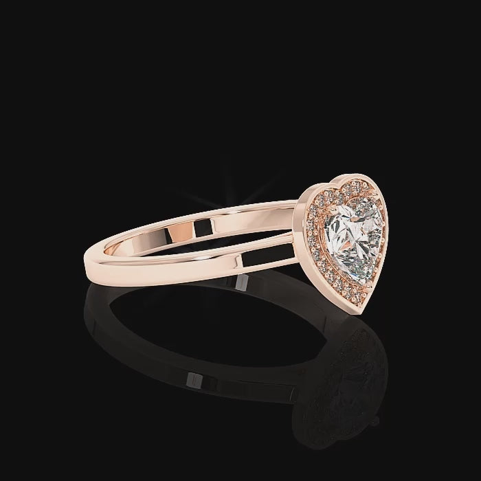 Heart Cut Diamond Ring with Halo - Rose Gold